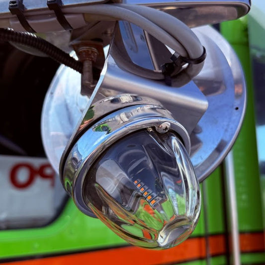 Exterior stainless steel light plates. All plates are made in America out of high quality #8 mirror finish 304 stainless steel. Plates are universal fitment for most makes and models including Peterbilt, Kenworth, Freightliner, International, Volvo, Mack and more.