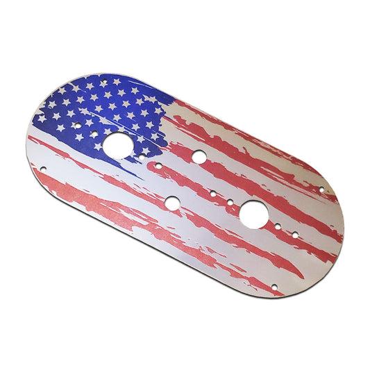 Black American Flag Stainless Steel Dome Light Plate with Full Radius Ends and 2 Watermelon Light Holes for Peterbilt and Kenworth