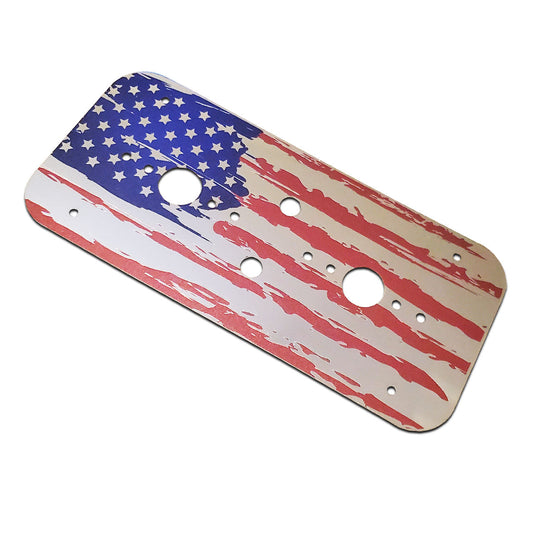 Black American Flag Stainless Steel Dome Light Plate with Radiused Corners and 2 Watermelon Light Holes for Peterbilt and Kenworth