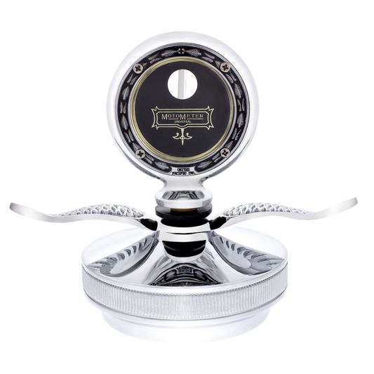 Chrome Aluminum Boyce MotoMeter with Base and Chrome Wings Hood Ornament