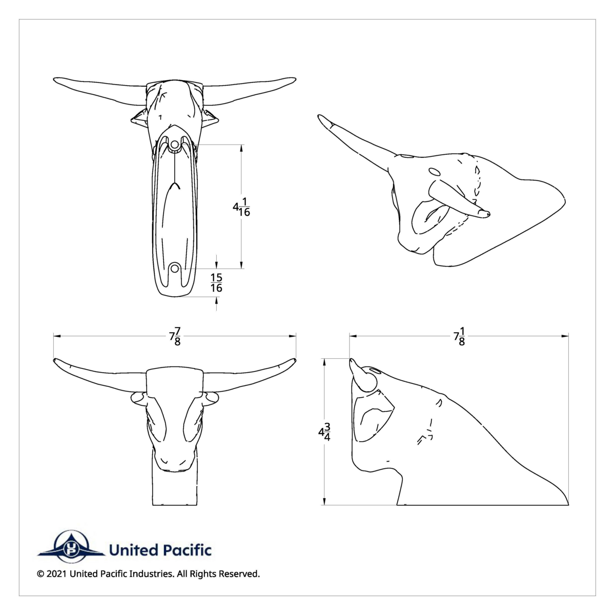Die-Cast Long Horn Bull Hood Ornament