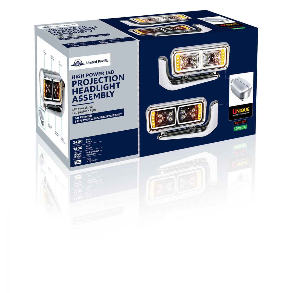 Peterbilt 10 LED Projection Headlight with 8 LED Turn and 100 LED Position Light Bar with Mounting Arm