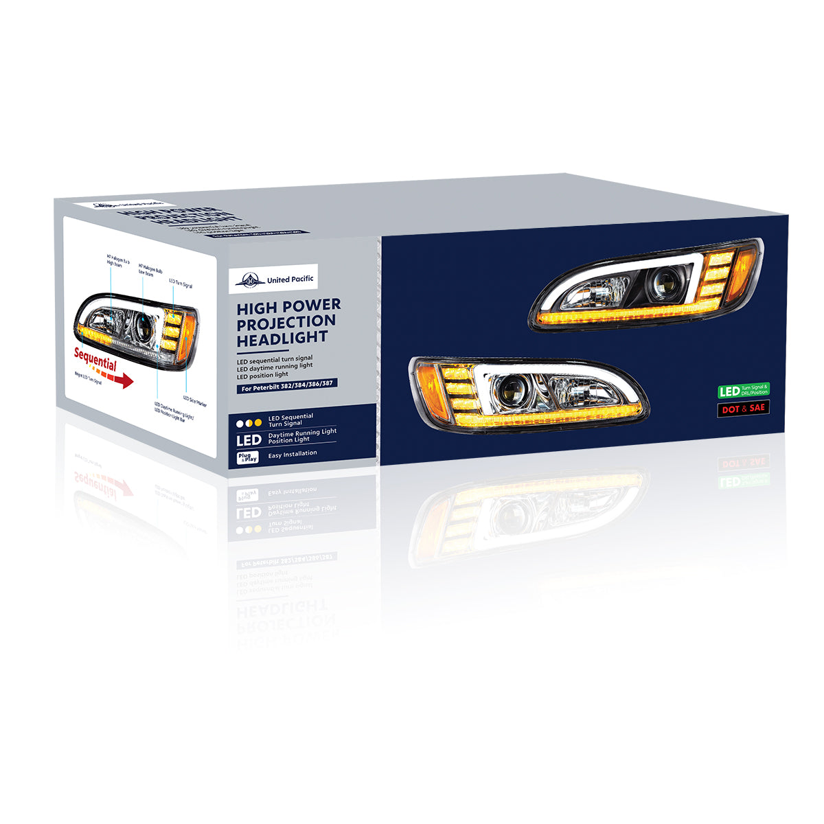 Peterbilt 330, 335, 337, 340, 348, 382, 384, 386, 387 Halogen Projection Headlight with 24 LED Sequential Turn and 18 LED Position Light