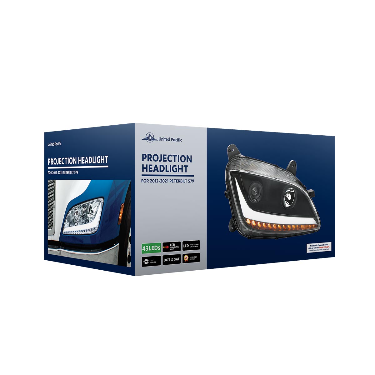 Peterbilt 579 and 587 Halogen Projection Headlight with 15 LED Sequential Turn Signal and 28 LED Position Light