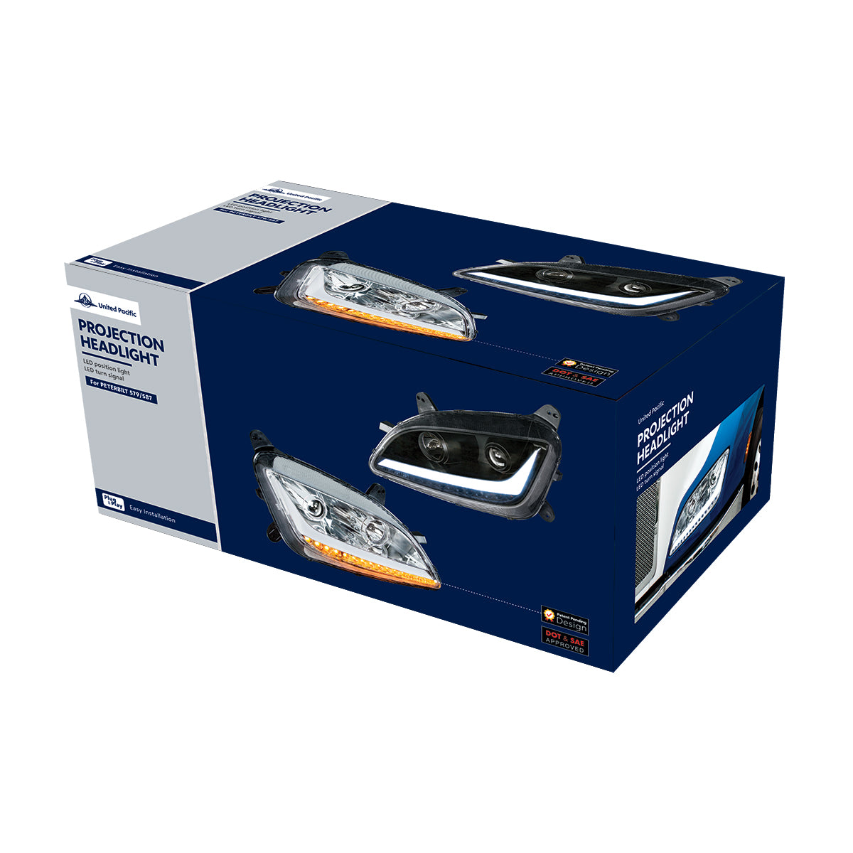 Peterbilt 579 and 587 Halogen Projection Headlight with LED Turn Signal and LED Position Light