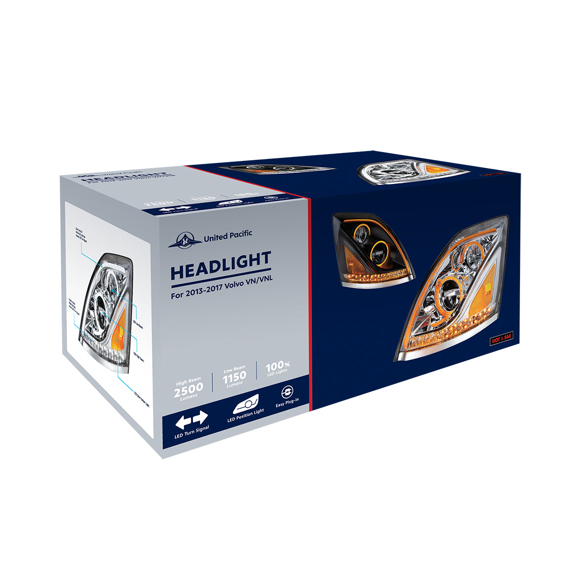 Volvo VN/VNL 2003-2017 LED Headlight with Dual Color Position Light Bar